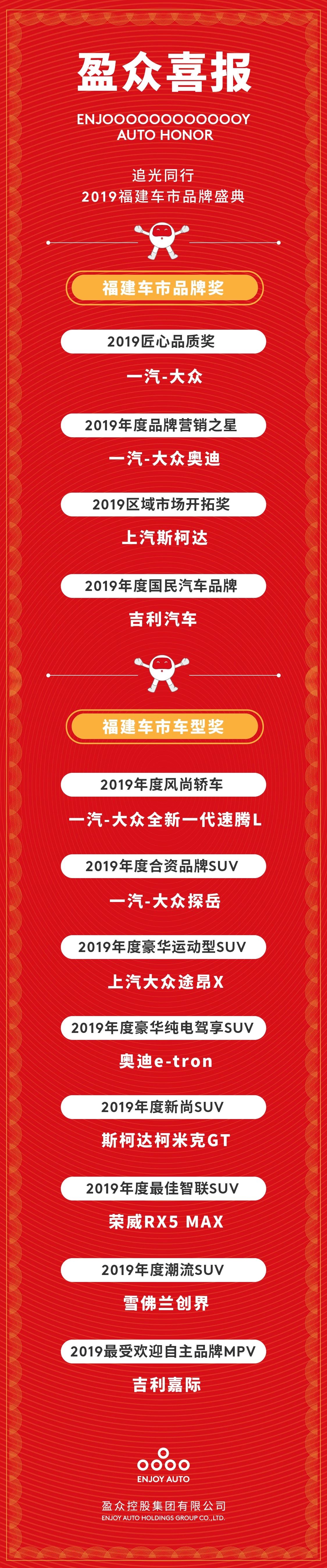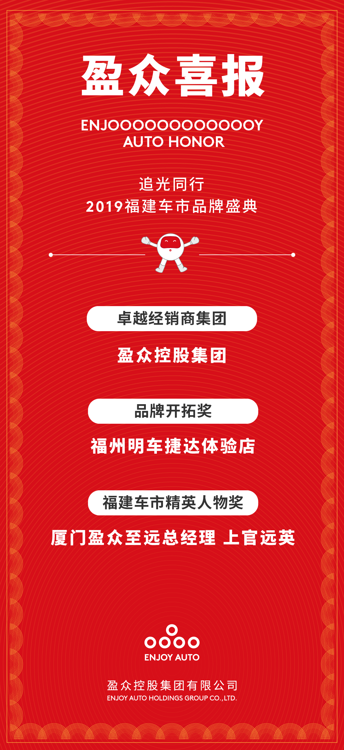 喜訊 | 盈眾榮獲2019福建車市品牌盛典“卓越經(jīng)銷商集團(tuán)”等多項(xiàng)大獎(jiǎng)