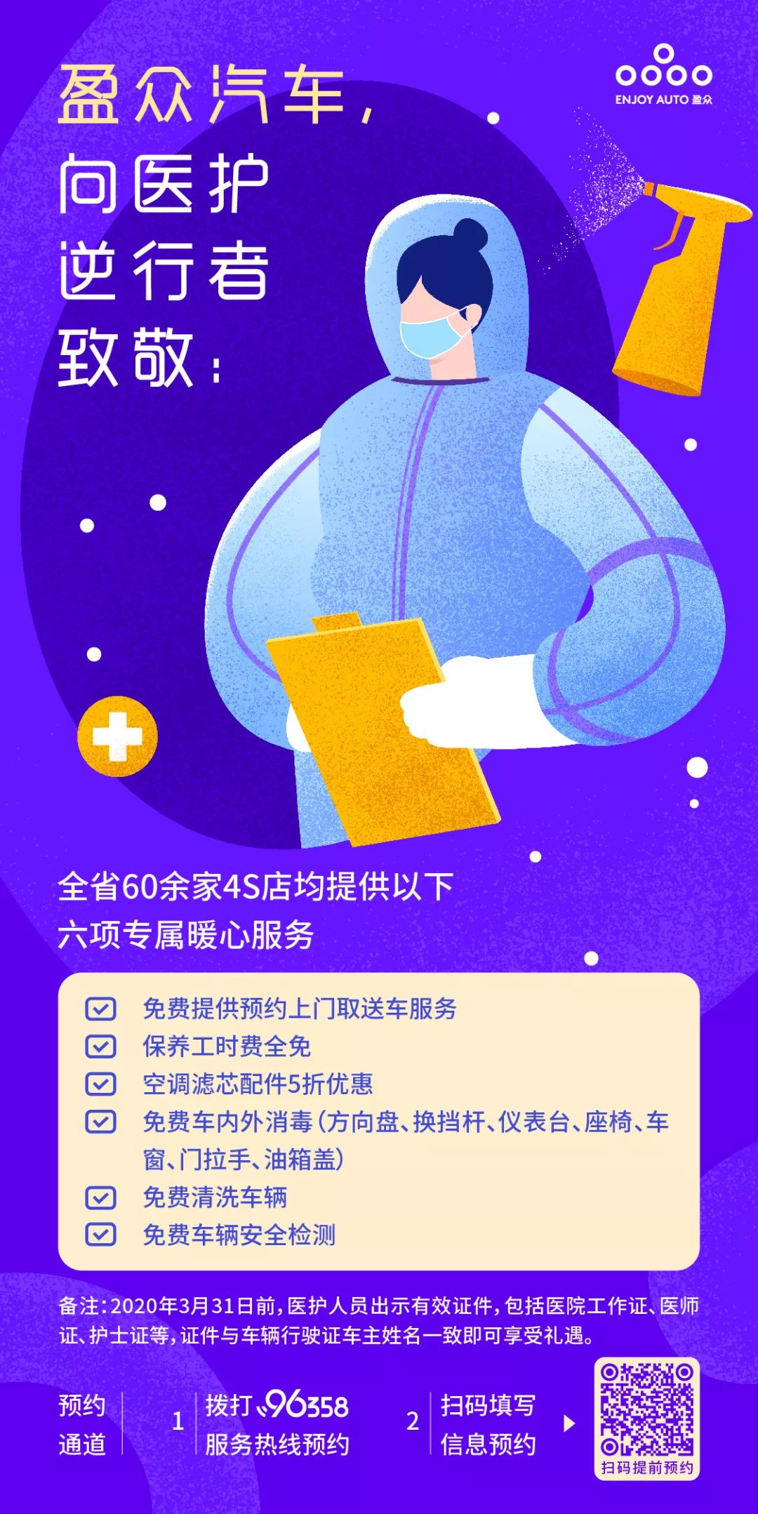 共同戰(zhàn)疫,盈眾汽車向醫(yī)護(hù)“逆行者”致敬,提供六大專屬售后禮遇;